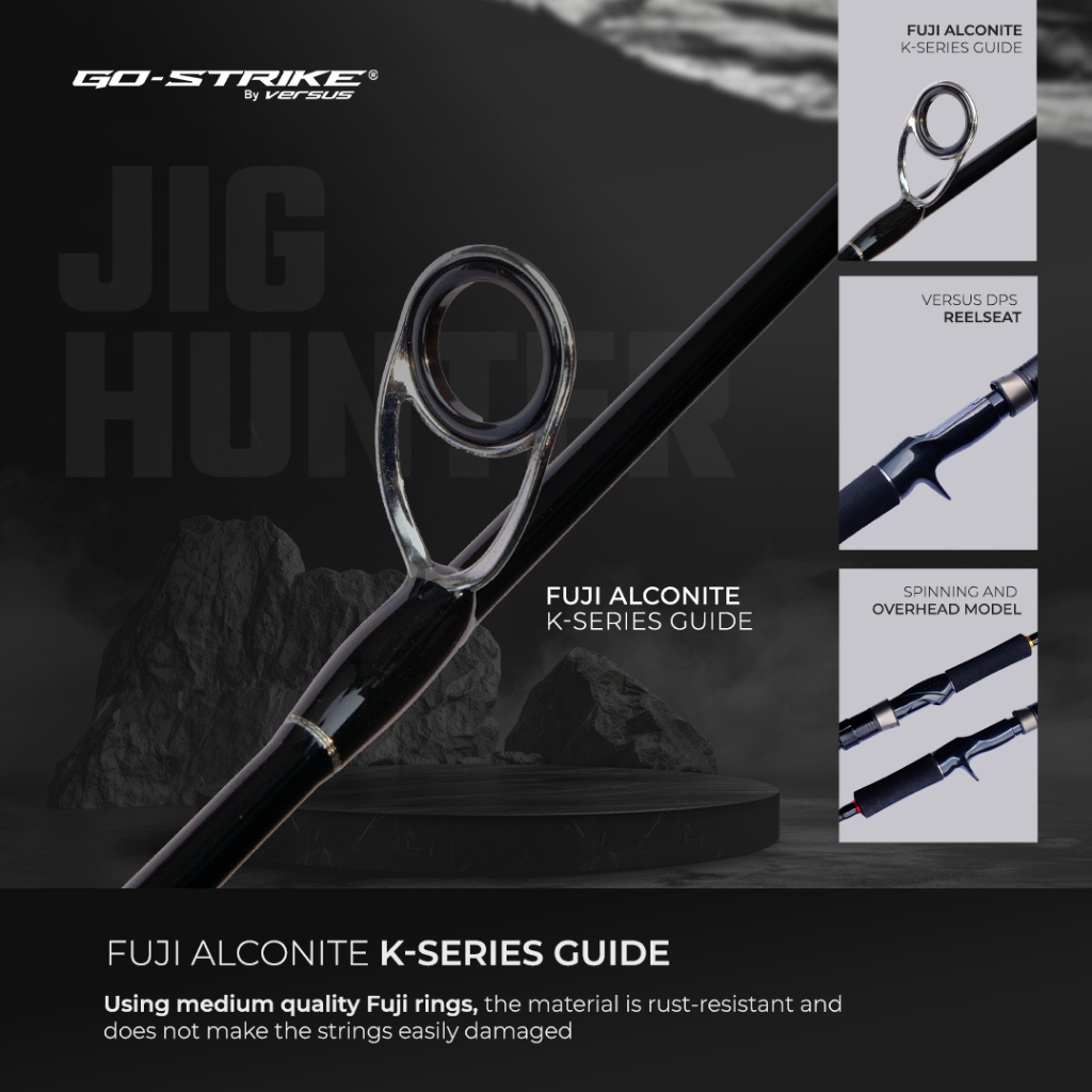 Joran Pancing GostrikeVersus Jig Hunter Solid Carbon 24T Fuji Alconite Guide Light Action - Spinning & Overhead + PARALON