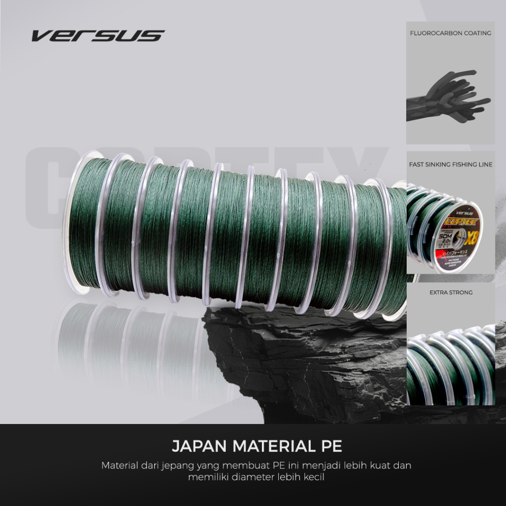 Senar Pancing Versus Cortex X8 50M – Tali Pancing Bahan PE Premium – Kuat & Tahan Gesekan