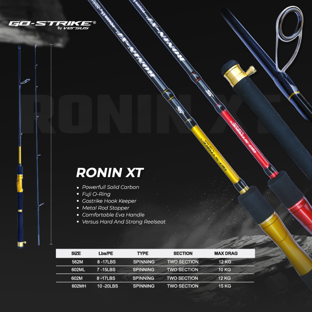 GOSTRIKE RONIN-XT – Joran Spinning Solid Carbon Power – Rod Turnamen dengan Fuji O-Ring + FREE KONES