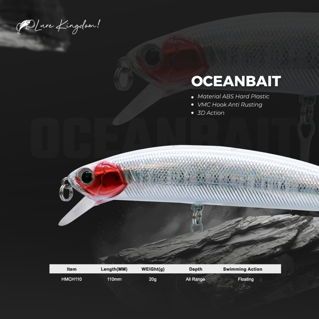 LURE KINGDOM OCEANBAIT - Umpan Floating Oceanbait 11Cm/20g 3D Action Lure Treble hook Anti Karat
