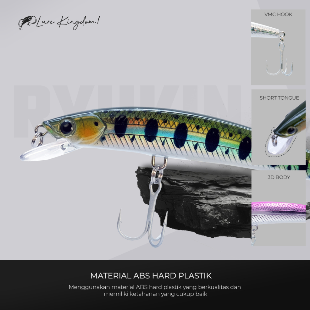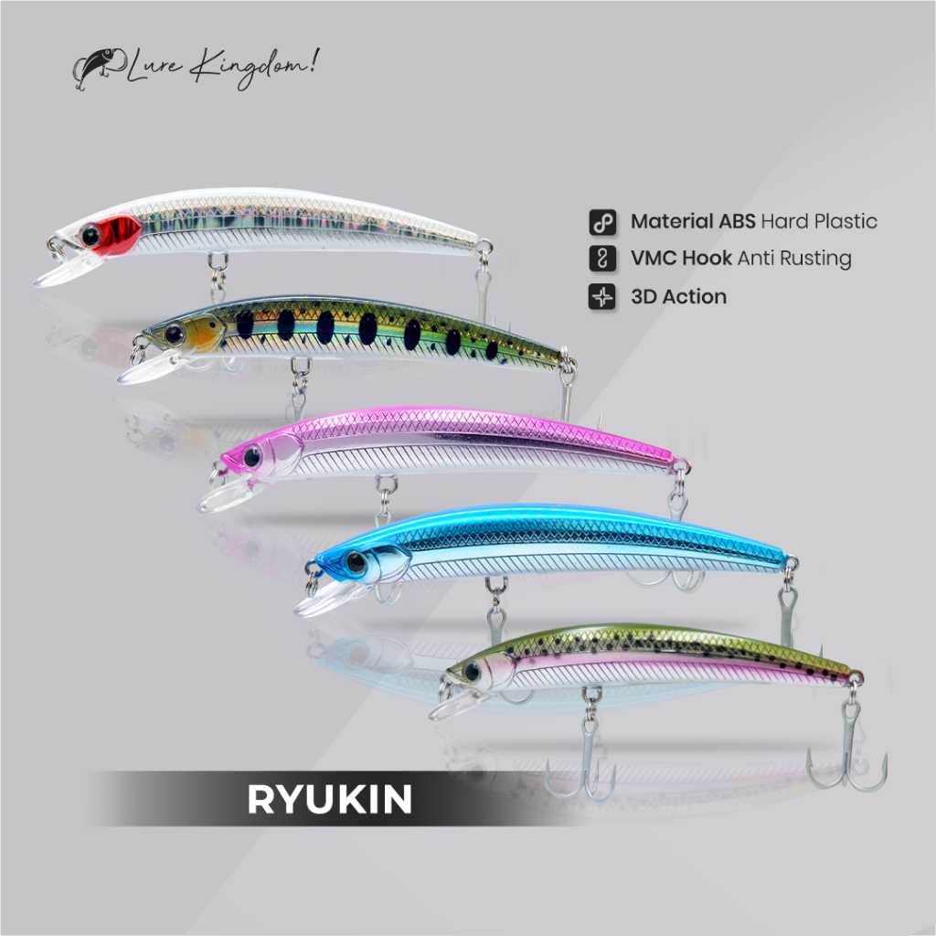 Lure Kingdom Ryukin - Umpan Minnow Sinking 3g - 15.5g Mat ABS Hard Plastic 3D Action VMC Hook Anti Rusting