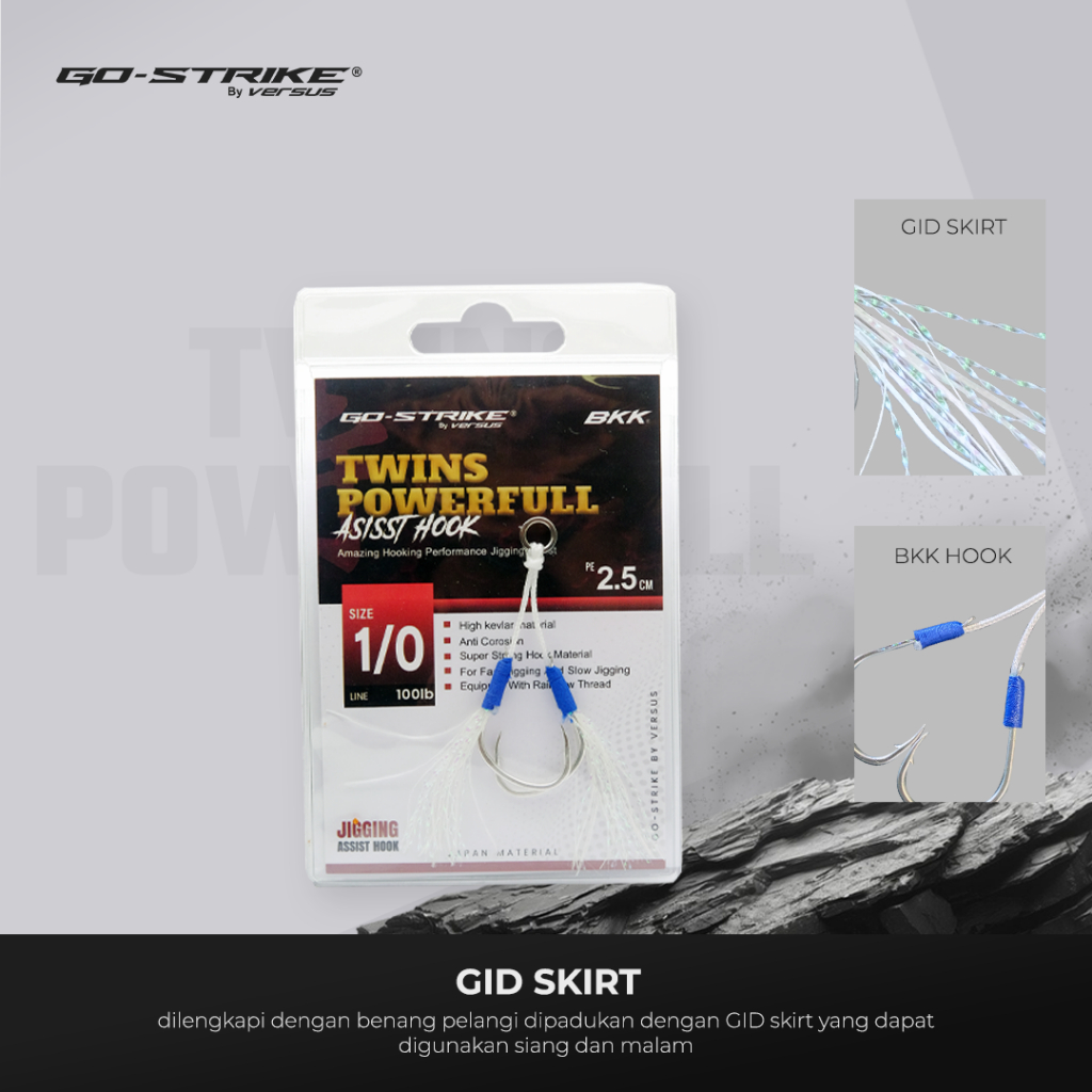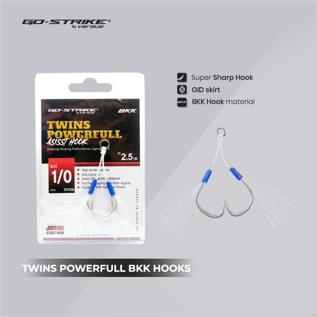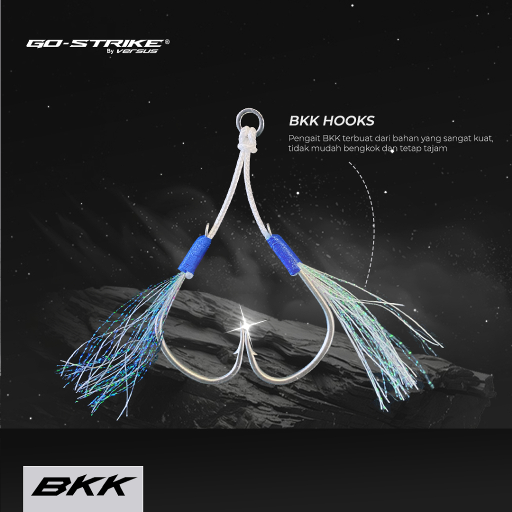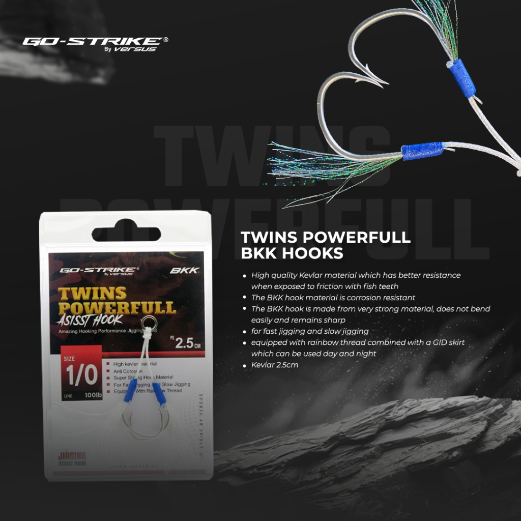 Kail Pancing Asisst Hook GoStrike Twins Powerfull BKK Hooks – High Quality Kevlar 2.5cm, Glow 5mm, GID Glow