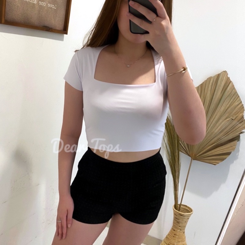 (DearTops) Zora Square Neck Crop Top Kotak | Basic Wear Crop Top / Bahan Jersey Premium (Double Layer)
