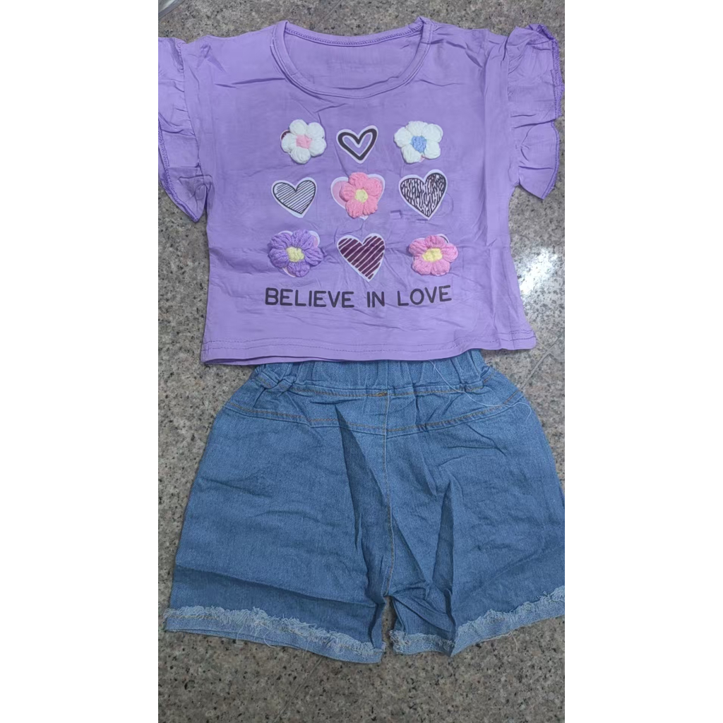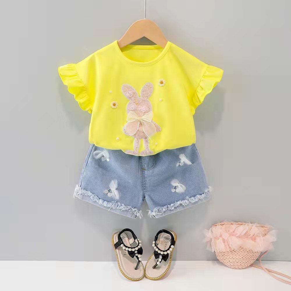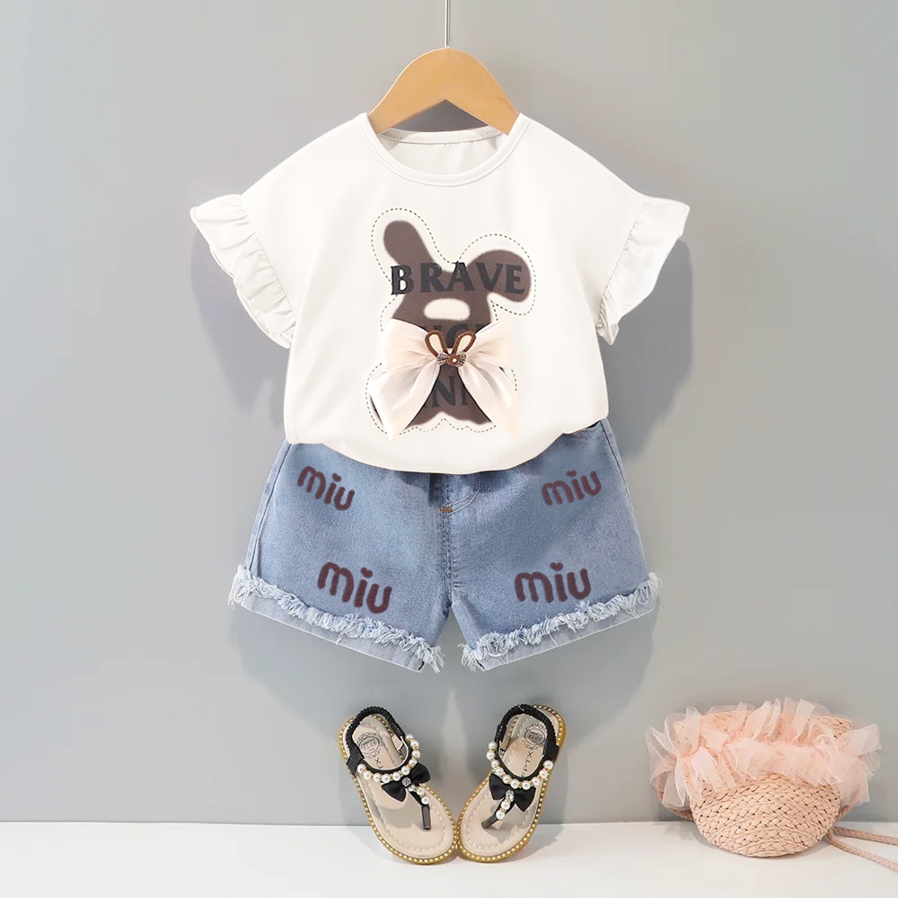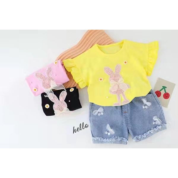 Setelan celana pendek anak cewek / Setelan hotpant anak perempuan / Baju anak cewek/ Pakaian anak import uisa 1-5Tahun