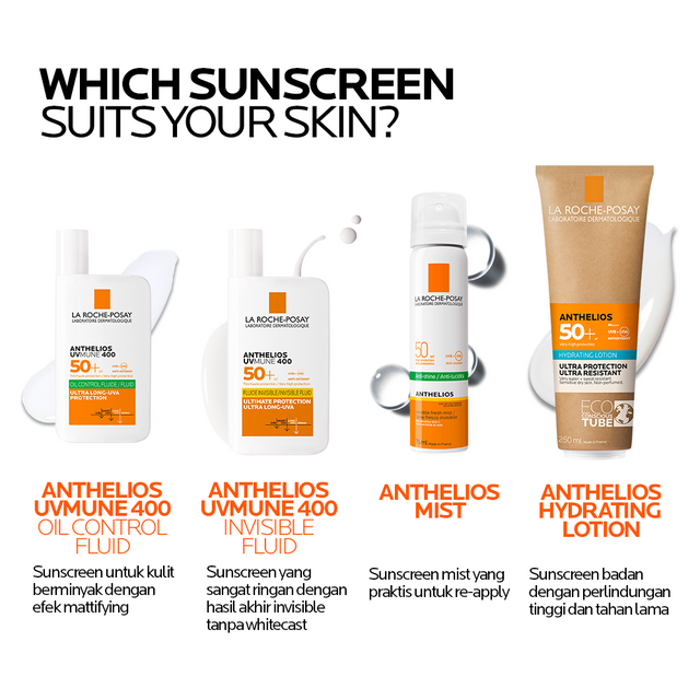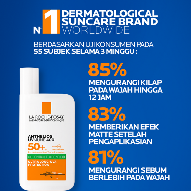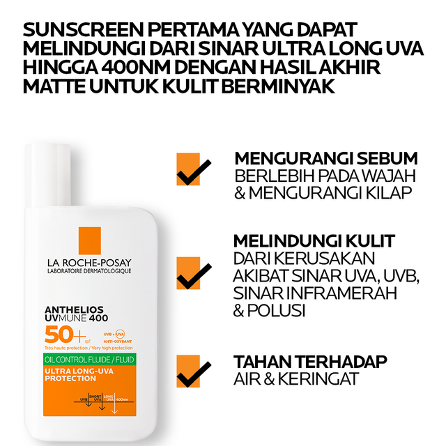 La Roche Posay Anthelios UVMune 400 Oil Control Fluid SPF50+ PA++++ 50ml - Sunscreen Kulit Jerawat/ Berminyak