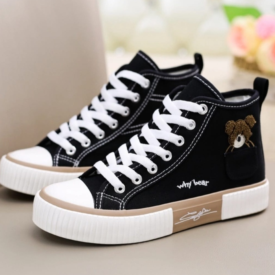 DM SHOPP-Sepatu Sneakers Hight Top Canvas Temali Casual Snakers Wanita Variasi Bear AS 168