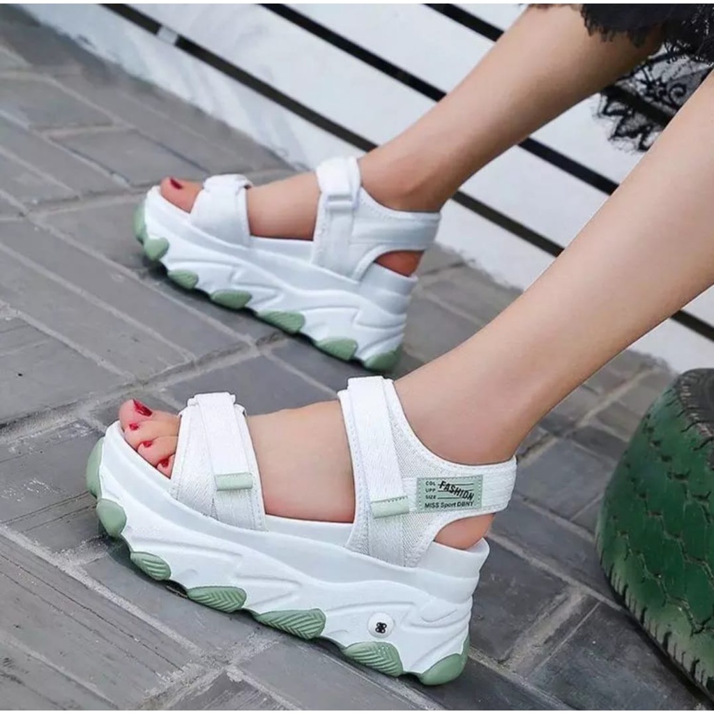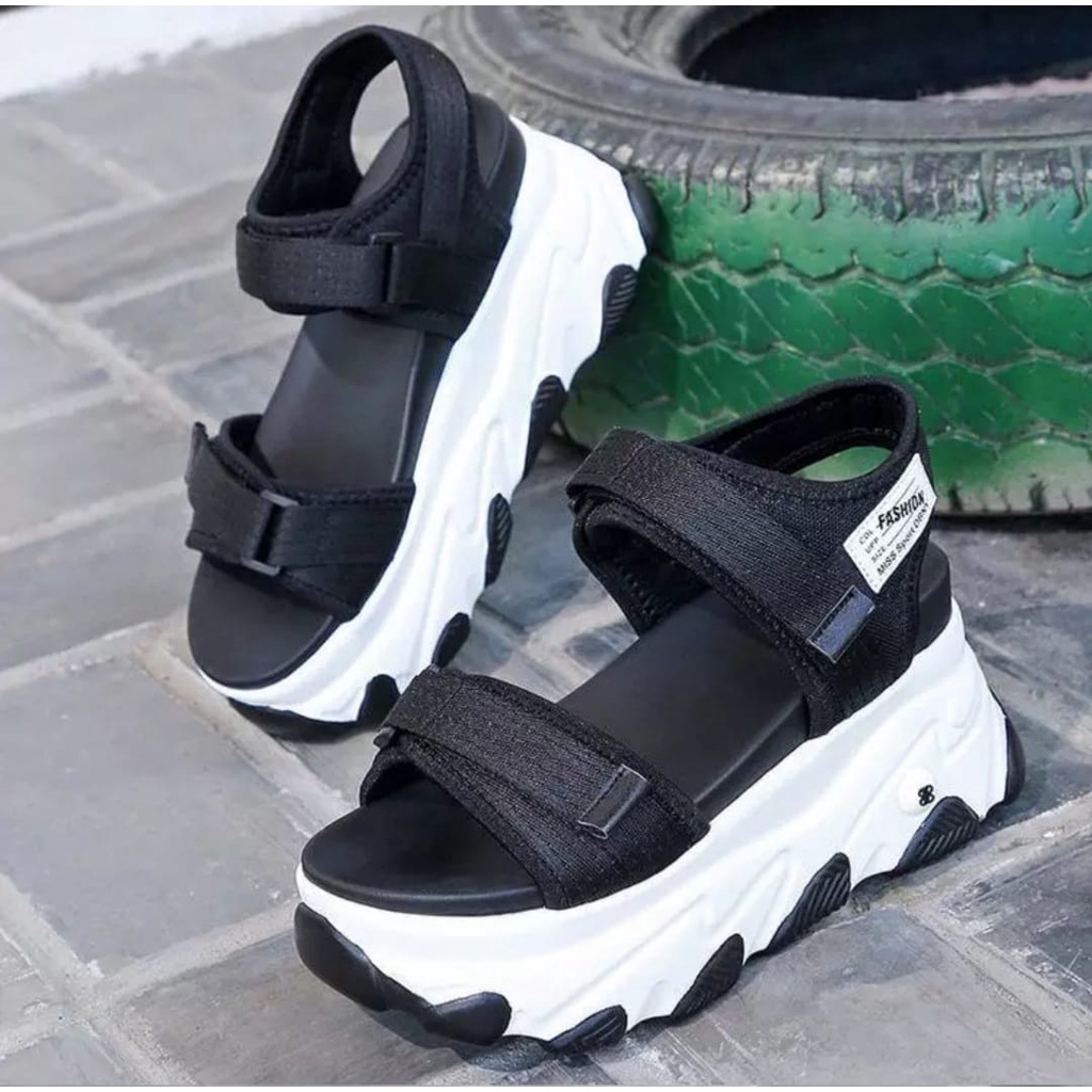 DM-SHOPP Sandal Wedges Wanita Hak Tebal Casual Double Velcro Kombinasi Webing Best Quality HD 90