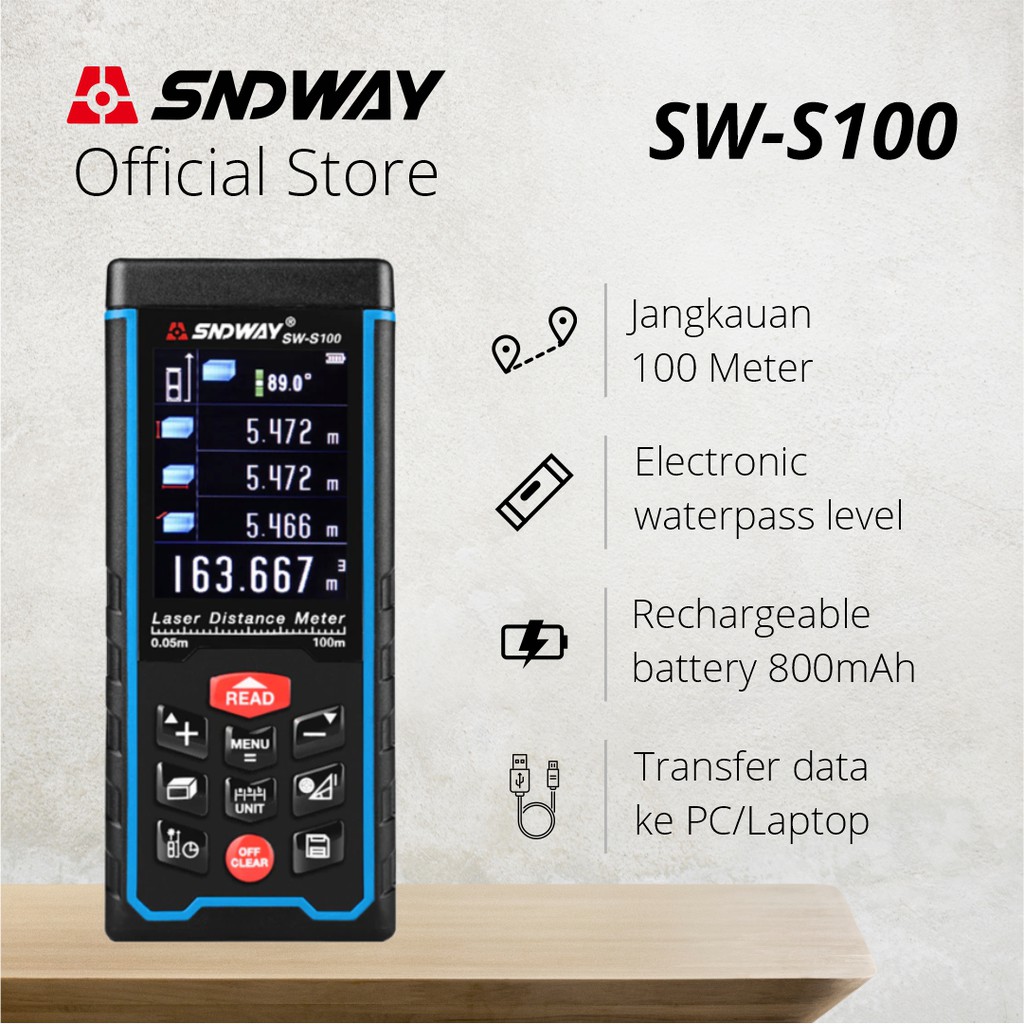 SNDWAY SW-S50/70/100 Digital Laser Distance Meter 50/70/100m Meteran Digital Baterai Charge