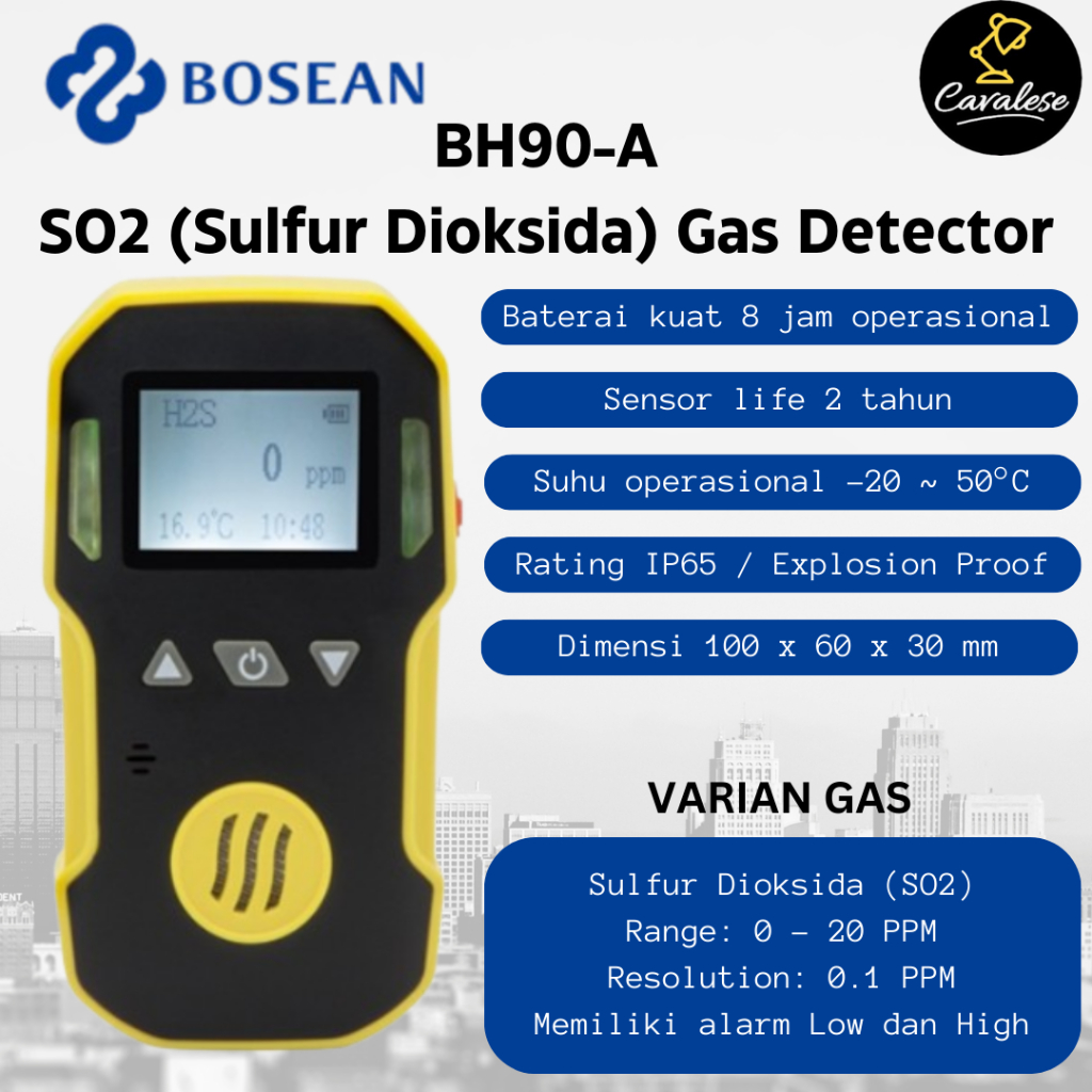 Bosean Single Gas Detector Karbon Monoksida/Oksigen/Hidrogen Sulfida CO/O2/H2S/SO2/CH4 BH90A