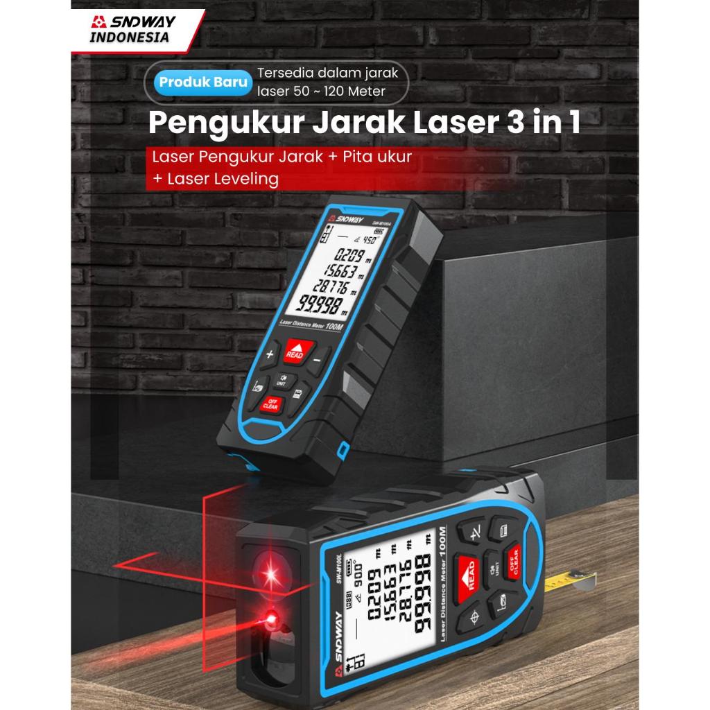 SNDWAY Meteran Digital Laser Distance Meter + Pita Ukur Manual + Laser Leveling 100 Meter SW-M100L