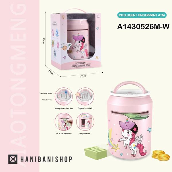 Mainan Celengan/ Piggy Bank Uang Kertas dan Koin Pakai Finger Print