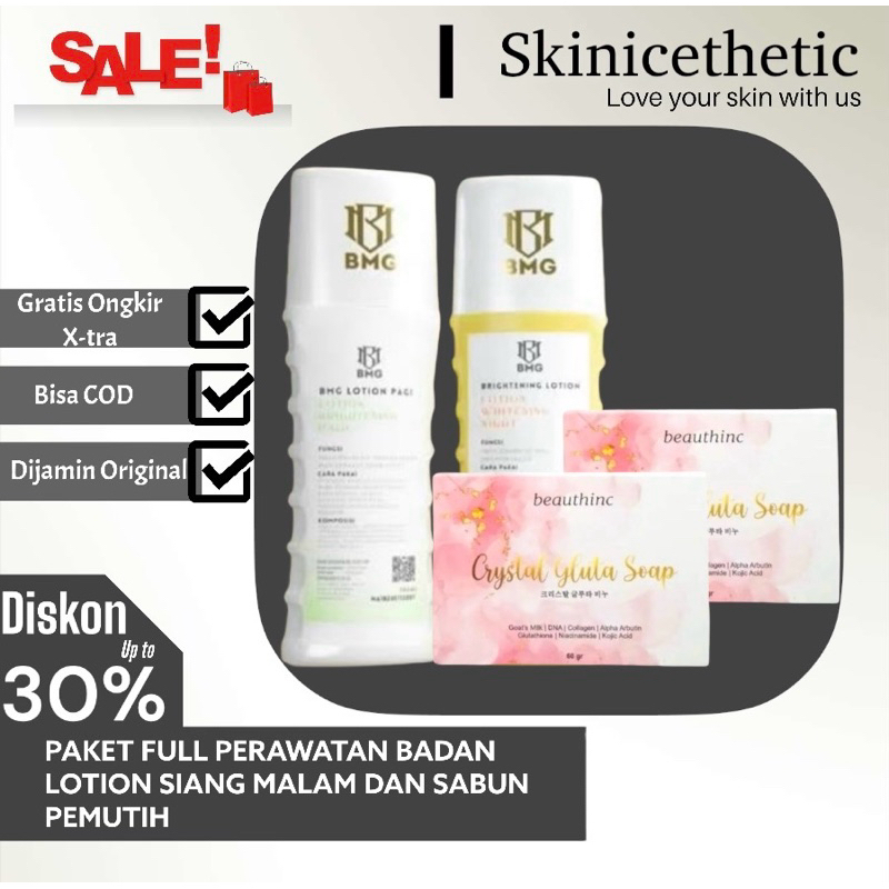 Paket Bundling Perawatan Badan BMG Lotion Anggur Pemutih dan Sabun BEAUTHINC Pemutih Badan