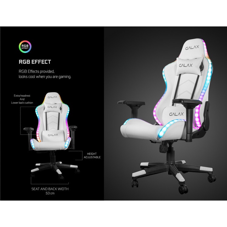 GALAX Gaming Chair GC-02 White - RGB Effect - Lumbar Pillow -