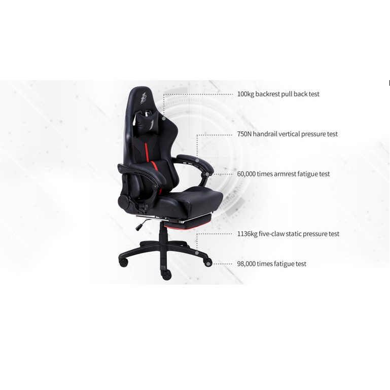 1STPLAYER GAMING CHAIR BD1 - BLACK - LUMBAR MASSAGE - Gamer’s Armrest & Leisure Footrest - High Quality Leather