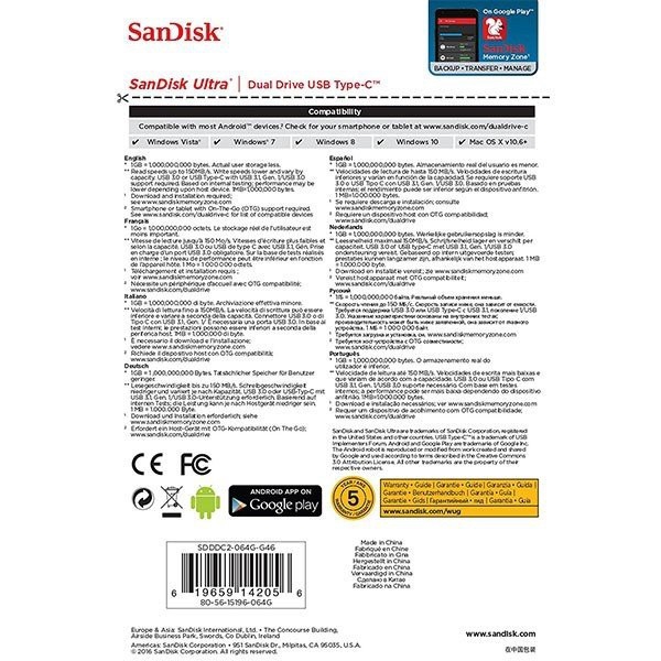 Sandisk Type C USB 3-1 Dual USB OTG 64GB SDDDC2-064G