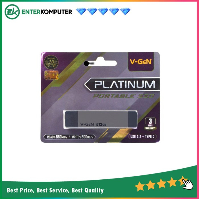 V-Gen SSD Portable Platinum 512GB - USB 3.2 Type C