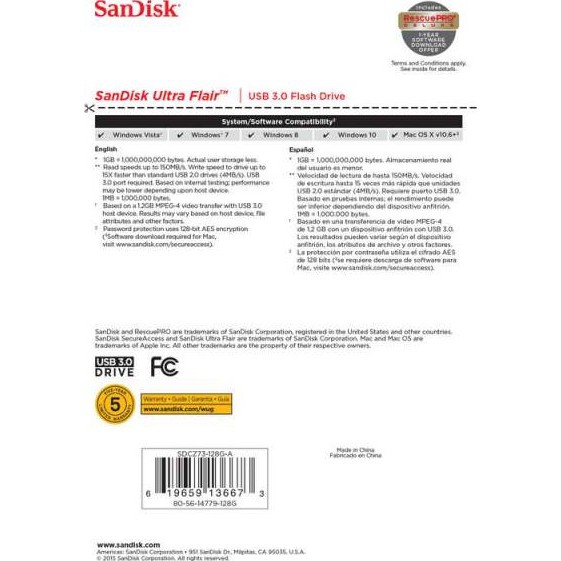 Sandisk Ultra Flair CZ73 128GB - USB 3-0 150MB s