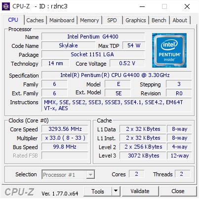 Intel Pentium G4400 - Tray Socket LGA 1151