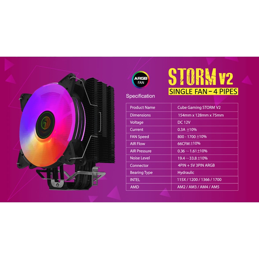 CUBE GAMING STORM V2 - SINGLE FAN ARGB - Universal Socket (AM5 Ready)
