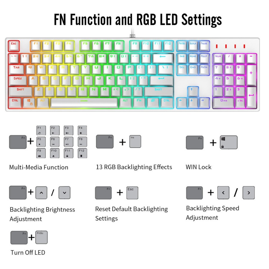 1STPLAYER DK5.0 WHITE - Gaming Mechanical Keyboard - Blue Switch