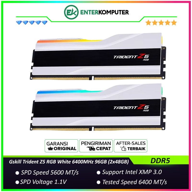 Gskill Trident Z5 RGB White DDR5 PC51200 6400MHz 96GB (2x48GB) / RAM 96GB