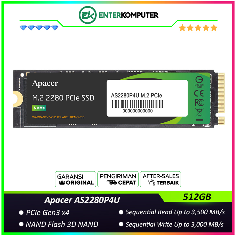 Apacer AS2280P4U 512GB M.2 NVME PCIe 3.0 x4 / SSD 512GB