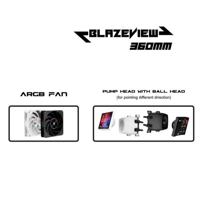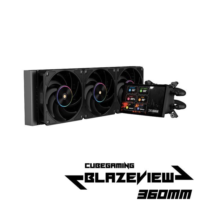 CUBE GAMING BLAZEVIEW 360 ARGB BLACK PERFORMANCE FAN Liquid Cooler - 5" IPS Screen Display - Magnetic Rotatable Pump Head with Custom Display