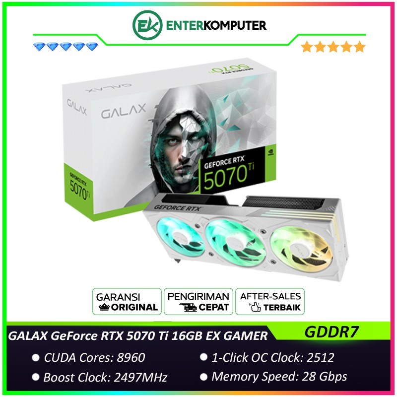 GALAX GeForce RTX 5070 Ti 16GB GDDR7 EX GAMER (1-Click OC) WHITE EDITION - ARGB LIGHTING OVERHAUL - TRIPLE FAN