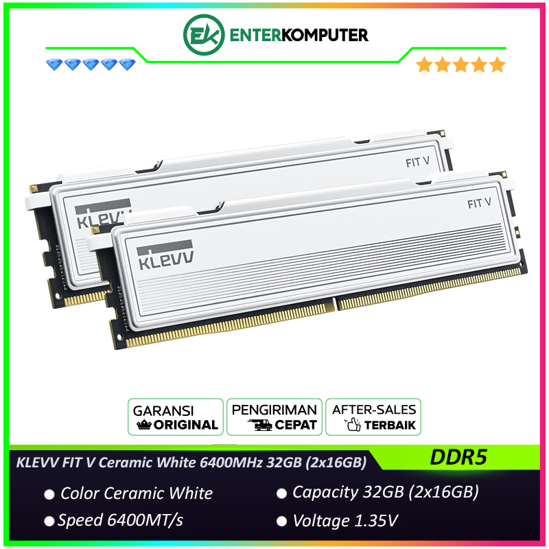 KLEVV FIT V Ceramic White DDR5 PC51200 6400MHz 32GB (2x16GB) / RAM 32GB