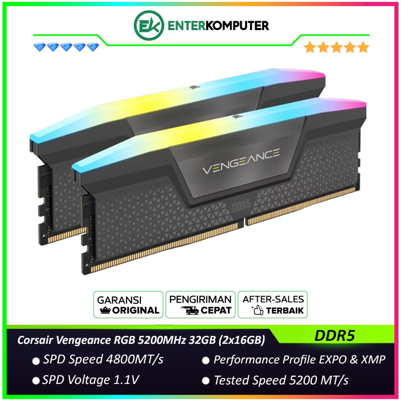 Corsair Vengeance RGB Grey DDR5 PC41600 5200MHz 32GB (2x16GB) / RAM 32GB