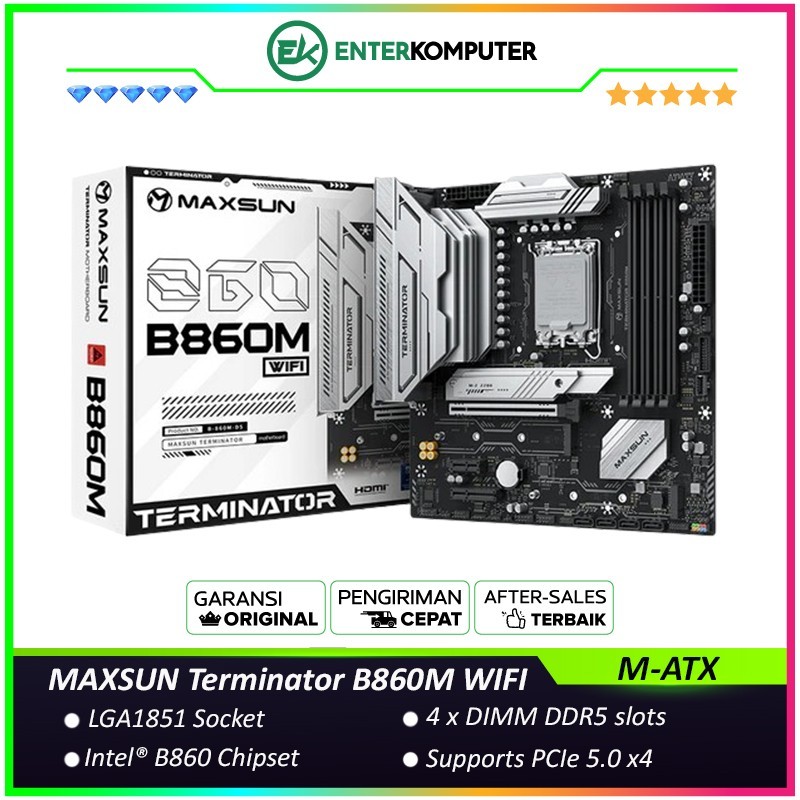 MAXSUN Terminator B860M WIFI (LGA1851, B860, DDR5, USB3.2 Gen2x2 Type-C, SATA3)
