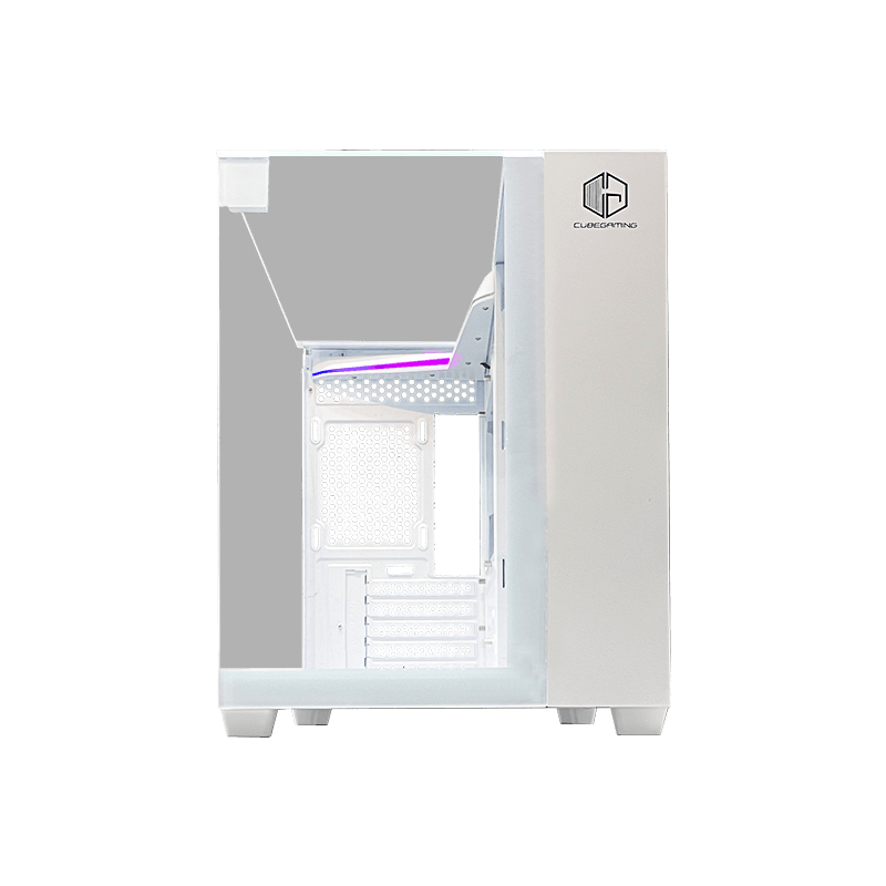 CUBE GAMING LICKA WHITE - mATX Gaming Case - All White Inside - Front-Left & Top Tempered Glass with L-Shape ARGB Strip