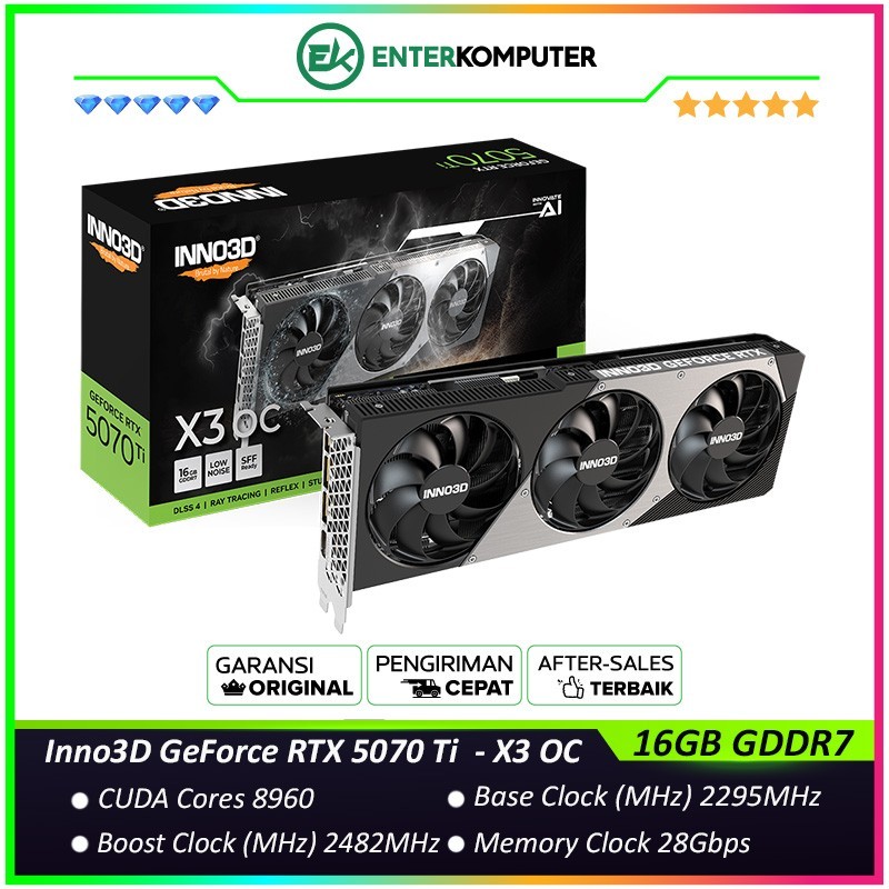 Inno3D GeForce RTX 5070 Ti 16GB GDDR7 X3 OC - Enormous Cooler with TRIPLE FAN
