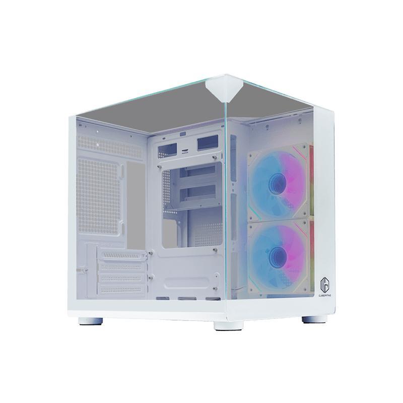 CUBE GAMING PREMIUM CIELO V2 WHITE - mATX Gaming Case - All White Inside - Front-Top & Left Side Tempered Glass