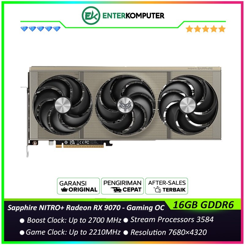 Sapphire NITRO+ Radeon RX 9070 16GB GDDR6 Gaming OC - TRIPLE FAN