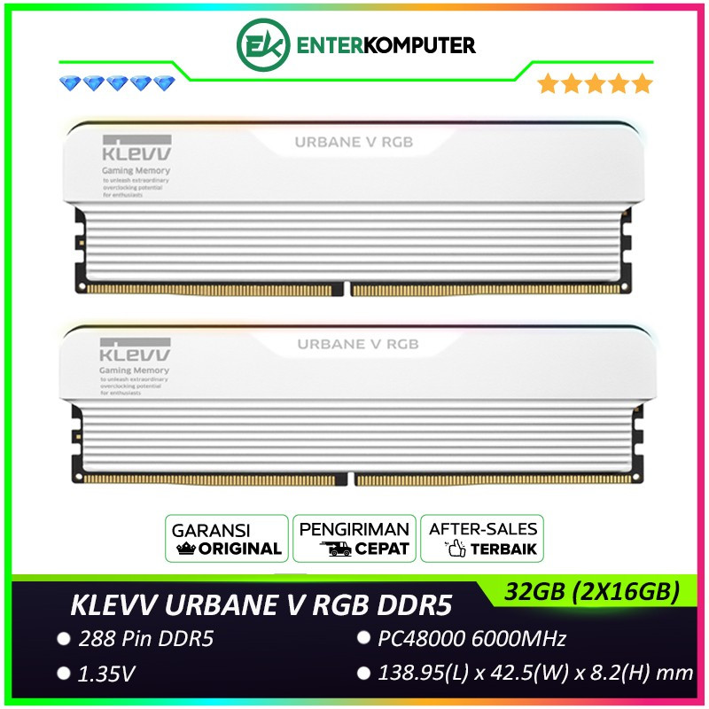 KLEVV URBANE V RGB DDR5 PC48000 6000MHz 32GB (2X16GB) White Heat-Spreader / RAM 32GB