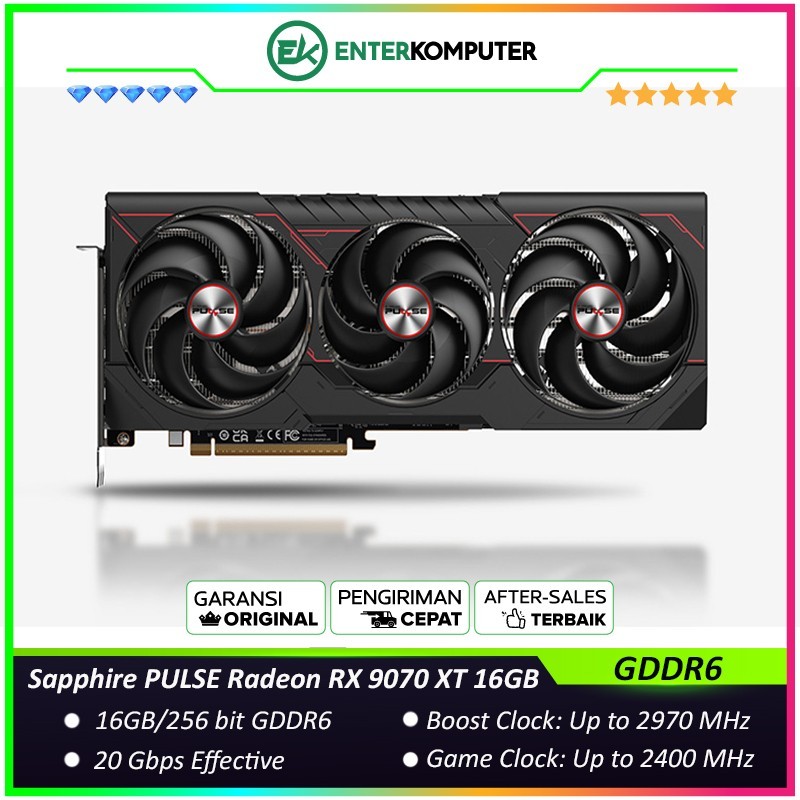 Sapphire PULSE Radeon RX 9070 XT 16GB GDDR6 Gaming - TRIPLE FAN
