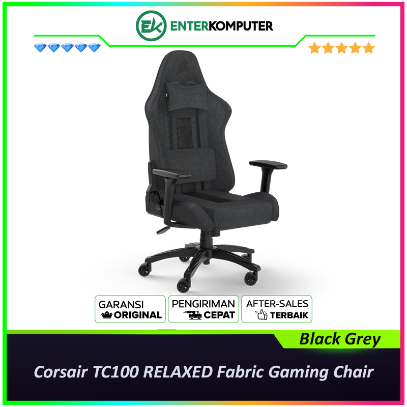 Corsair TC100 RELAXED Fabric Gaming Chair - Black Grey