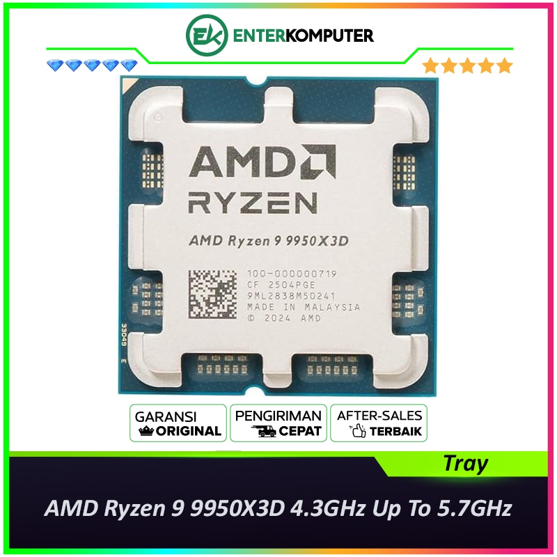 AMD Ryzen 9 9950X3D 4.3GHz Up To 5.7GHz Cache 128MB 170W AM5 [Tray]