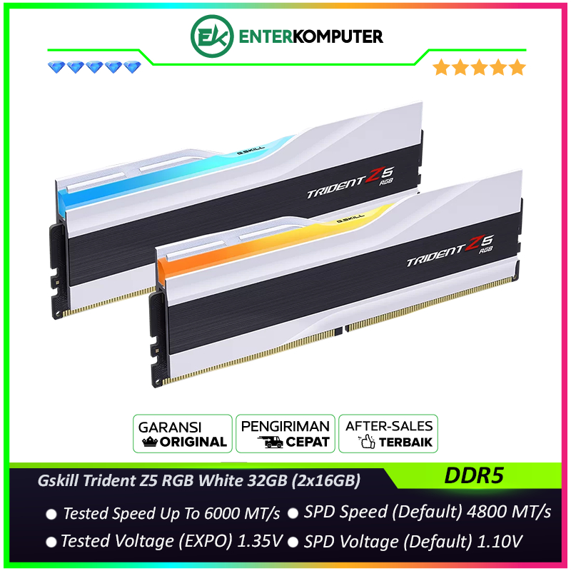Gskill Trident Z5 RGB White DDR5 PC48000 6000MHz 32GB (2x16GB) CL36 / RAM 32GB