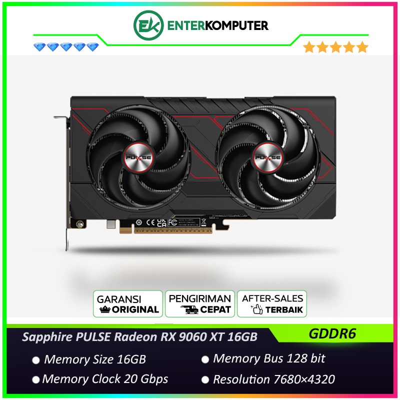 Sapphire PULSE Radeon RX 9060 XT 16GB GDDR6 Gaming OC - DUAL FAN