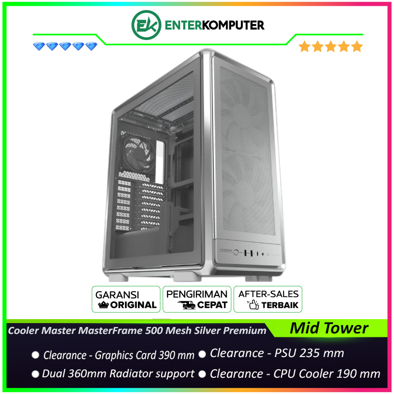 Cooler Master MasterFrame 500 Mesh Silver Premium Open-Frame Mid-Tower ATX Case