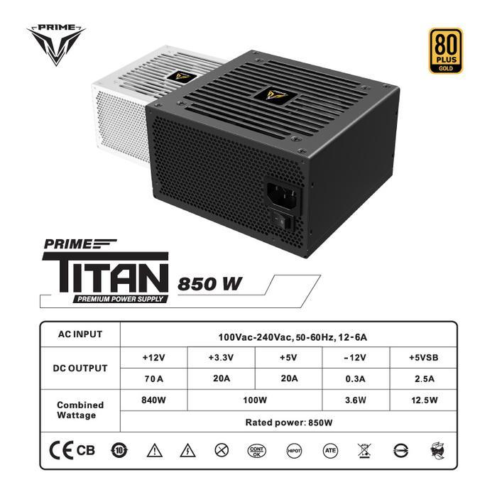 PRIME PREMIUM TITAN ATX 3.1 850W WHITE - 80+ Gold Certified with Embossed Cable - Full Modular / PSU 850 Watt