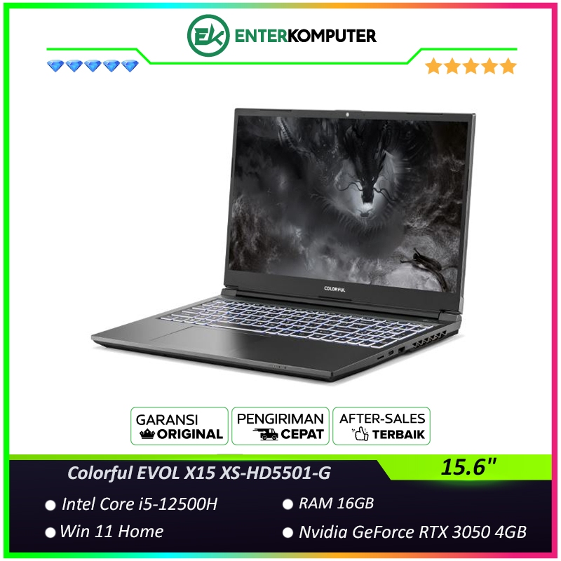 Colorful EVOL X15 XS-HD5501-G - Laptop Core i5-12500H RAM 16GB SSD 512GB RTX 3050 4GB 15.6" FHD 144Hz