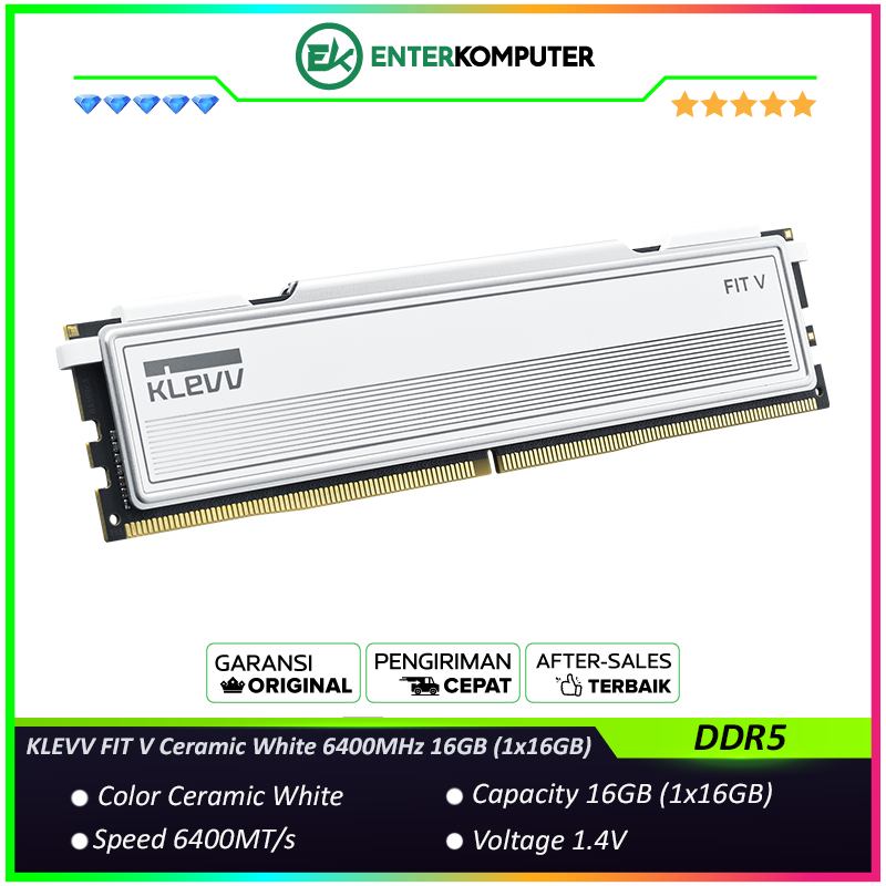 KLEVV FIT V Ceramic White DDR5 PC51200 6400MHz 16GB (1x16GB) / RAM 16GB