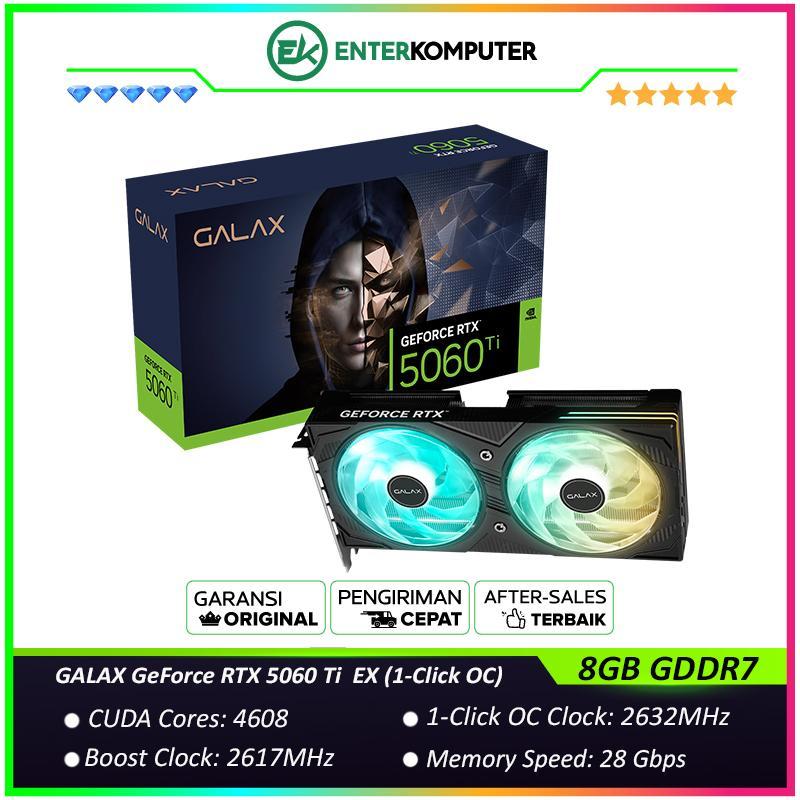 GALAX GeForce RTX 5060 Ti 8GB GDDR7 EX (1-Click OC) - ARGB LIGHTING OVERHAUL - DUAL FAN