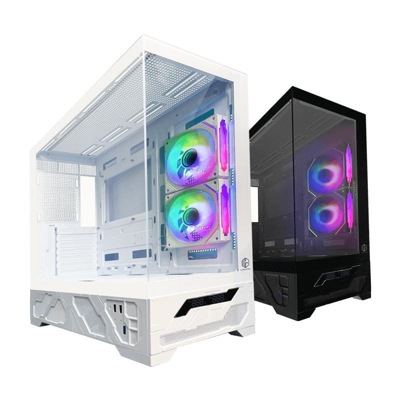 CUBE GAMING SLAN WHITE - ATX Gaming Case - All White Inside - Digital CPU/GPU Screen Display - Front & Left Side Tempered Glass