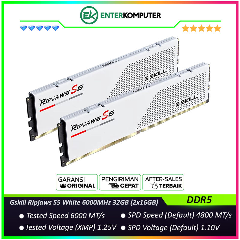 Gskill Ripjaws S5 White DDR5 PC48000 6000MHz 32GB (2x16GB) / RAM 32GB