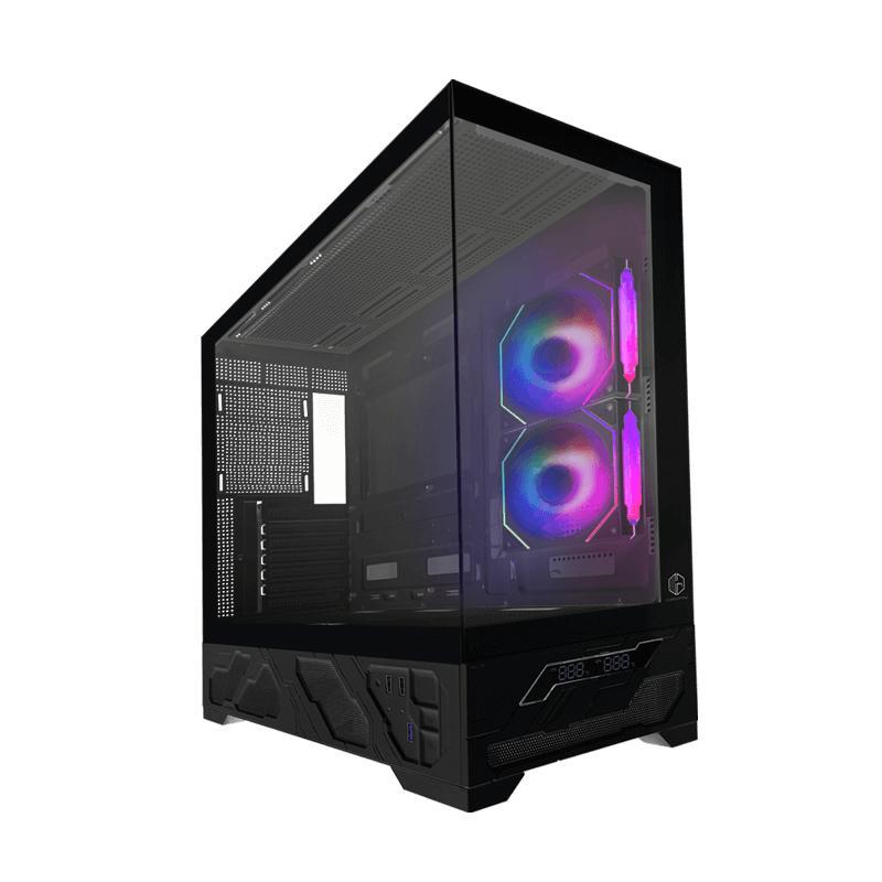 CUBE GAMING SLAN BLACK - ATX Gaming Case - Digital CPU/GPU Screen Display - Front & Left Side Tempered Glass