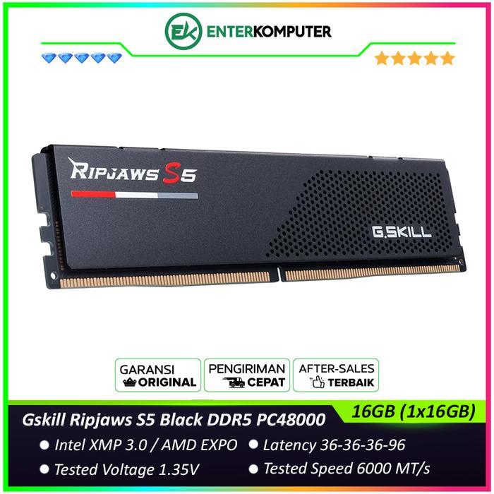 Gskill Ripjaws S5 Black DDR5 PC48000 6000MHz 16GB (1x16GB) CL36 / RAM 16GB